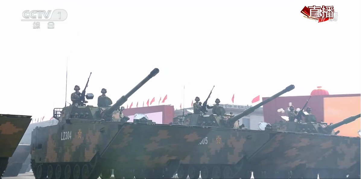 兩棲突擊車方隊:“海上超跑”名不虛傳。05A式兩棲裝甲突擊車是我國海軍陸戰隊的核心作戰力量,動力強勁,信息化程度、信息獲取能力強,主要用于遂行搶灘登陸、抗登陸等作戰任務,具有擊穿敵裝甲目標和破壞敵海岸防御工事的能力,具有在行進間對移動目標進行射擊的能力和全天候的作戰功能,是聯合作戰的“尖刀利刃”。在“國際軍事比賽”的“海上登陸”賽中,超強性能總是驚艷賽場,因其極快的速度,被軍迷親切稱為“海上超跑”、“水中蛟龍”。