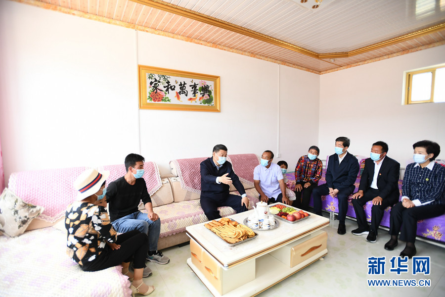 6月8日至10日,中共中央總書記、國家主席、中央軍委主席習近平在寧夏考察。這是6月8日下午,習近平在吳忠市紅寺堡區紅寺堡鎮弘德村,同回族村民劉克瑞一家親切交流。 新華社記者 謝環馳 攝