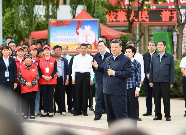 習近平總書記8日赴寧夏考察調研。當天下午,他先后來到吳忠市紅寺堡鎮弘德村、黃河吳忠市城區段、金星鎮金花園社區,了解當地推進脫貧攻堅、加強黃河流域生態保護、促進民族團結等情況。(攝影:新華社記者 鞠鵬 謝環馳 王曄 燕雁)