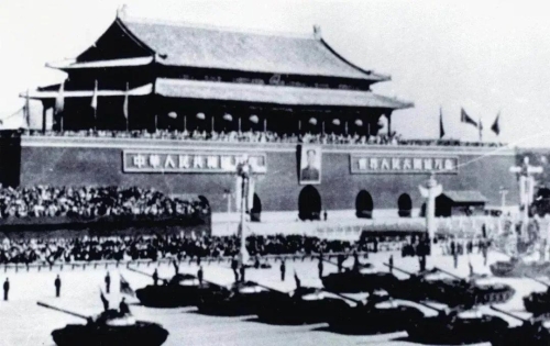 1959年10月1日,在慶祝中華人民共和國建國十周年盛大閱兵式上,32輛59式坦克在地面武器裝備的最前列,威武雄壯地駛過天安門,接受黨和人民的檢閱。這是中國人自主研制的坦克首次向世人展示。