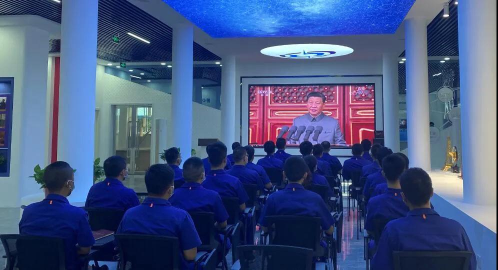 集團公司總經理、黨組副書記劉大山,黨組副書記周艦,黨組成員、總會計師張華,紀檢監察組組長、黨組成員陳學釧,黨組成員、副總經理鄒文超,黨組成員、副總經理植玉林帶領總部全體職工觀看慶祝大會,各單位組織機關干部、科研人員、車間工人等通過集中收看、電視、電腦、手機網絡等方式觀看慶祝大會。