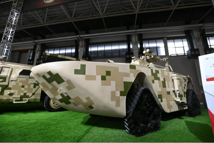 記者現場看到,眾多新型武器裝備已抵達兵器館。其中,兩棲無人戰車和輕型高機動車載蜂群武器系統均為首次亮相。兩棲無人戰車可應對未來多元化兩棲任務;輕型高機動車載蜂群武器系統可執行偵察、區域封控、精確打擊、集群打擊毀傷評估等多樣化任務。
