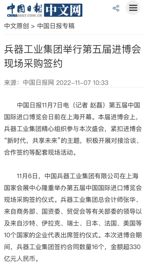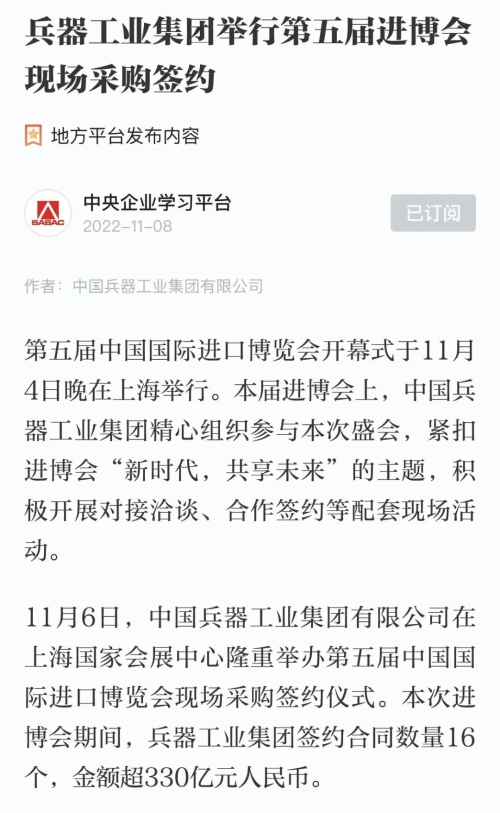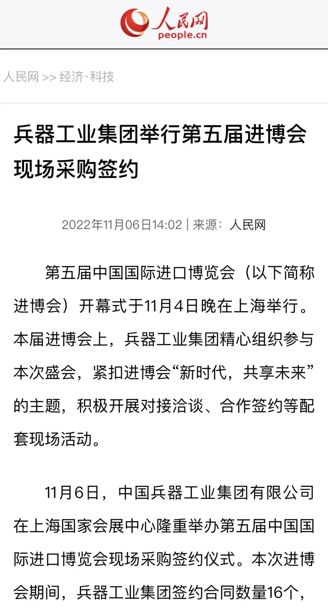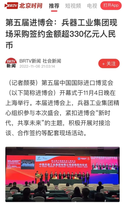 兵器工業(yè)集團第五屆進博會成果受到廣泛關注 |