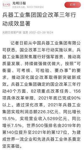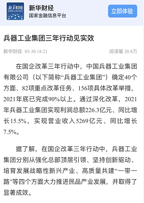 光明日報客戶端:兵器工業集團國企改革三年行動成效顯著