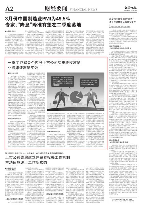《證券日報》:一季度17家央企控股上市公司實施股權激勵 業績印證激勵實效