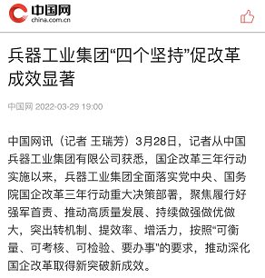 中國網:兵器工業集團“四個堅持”促改革 成效顯著