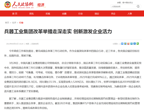 人民政協網:兵器工業集團改革舉措走深走實 創新激發企業活力