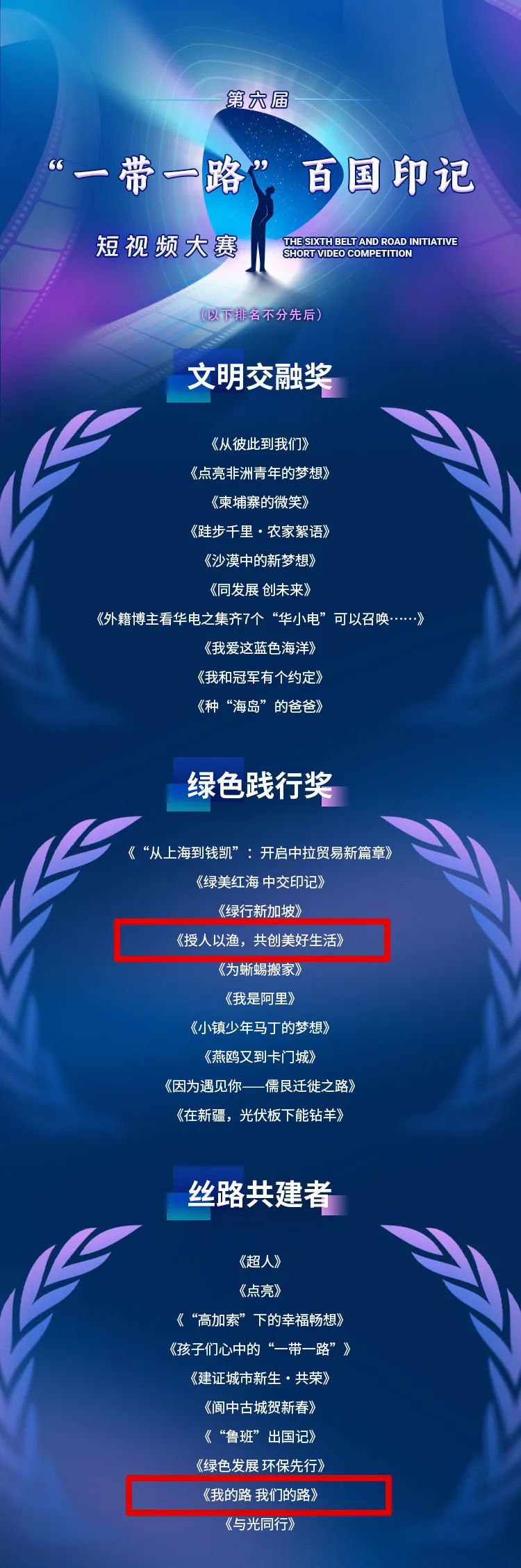 近日,由中國公共外交協(xié)會主辦,國務(wù)院國資委新聞中心等單位協(xié)辦的第六屆“一帶一路”百國印記短視頻大賽獲獎名單正式揭曉,經(jīng)過激烈角逐,共有108部作品脫穎而出,中國兵器工業(yè)集團北方公司兩部作品獲獎,其中,北方礦業(yè)《授人以漁,共創(chuàng)美好生活》榮獲“綠色踐行獎”,北方國際《我的路 我們的路》榮獲“絲路共建者”。